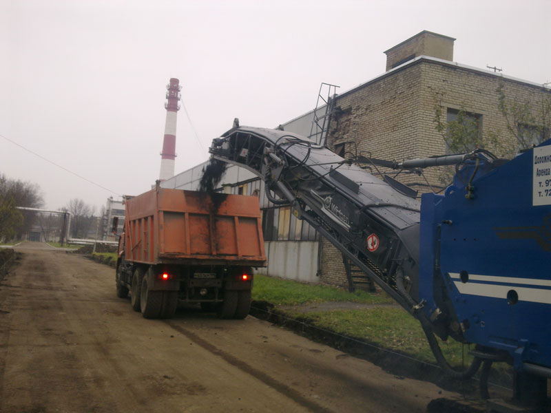 Капитальный ремонт внутриплощадочных дорог на территории ФГУП Щелковский биокомбинат: Московская область, пос. Биокомбинат Фрезировка дорожного полотна.