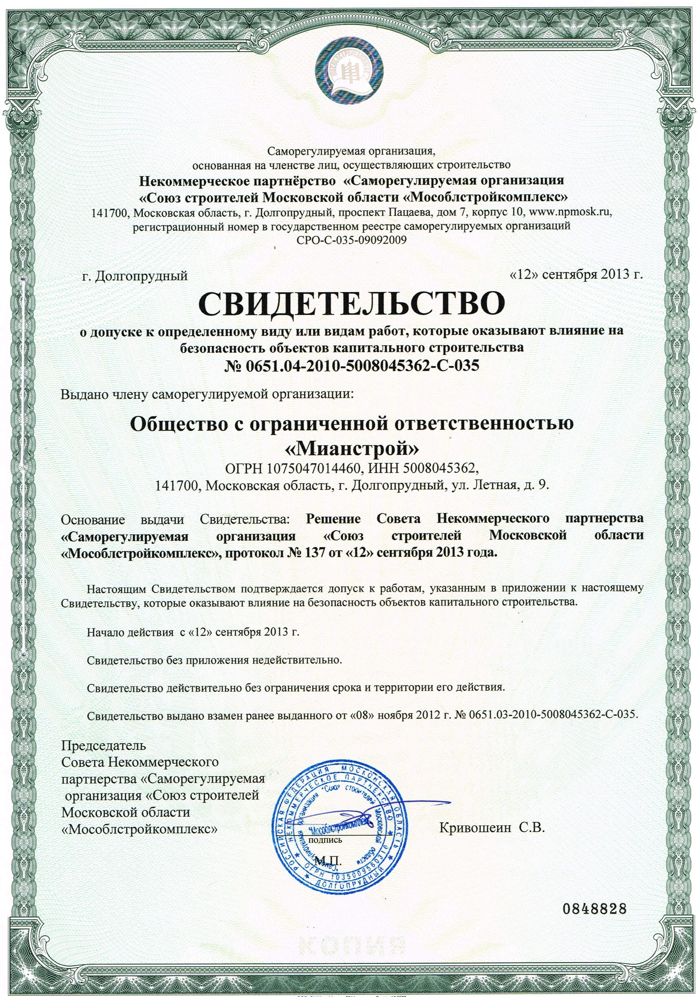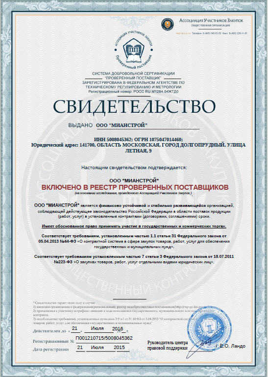 Разрешительная документация: