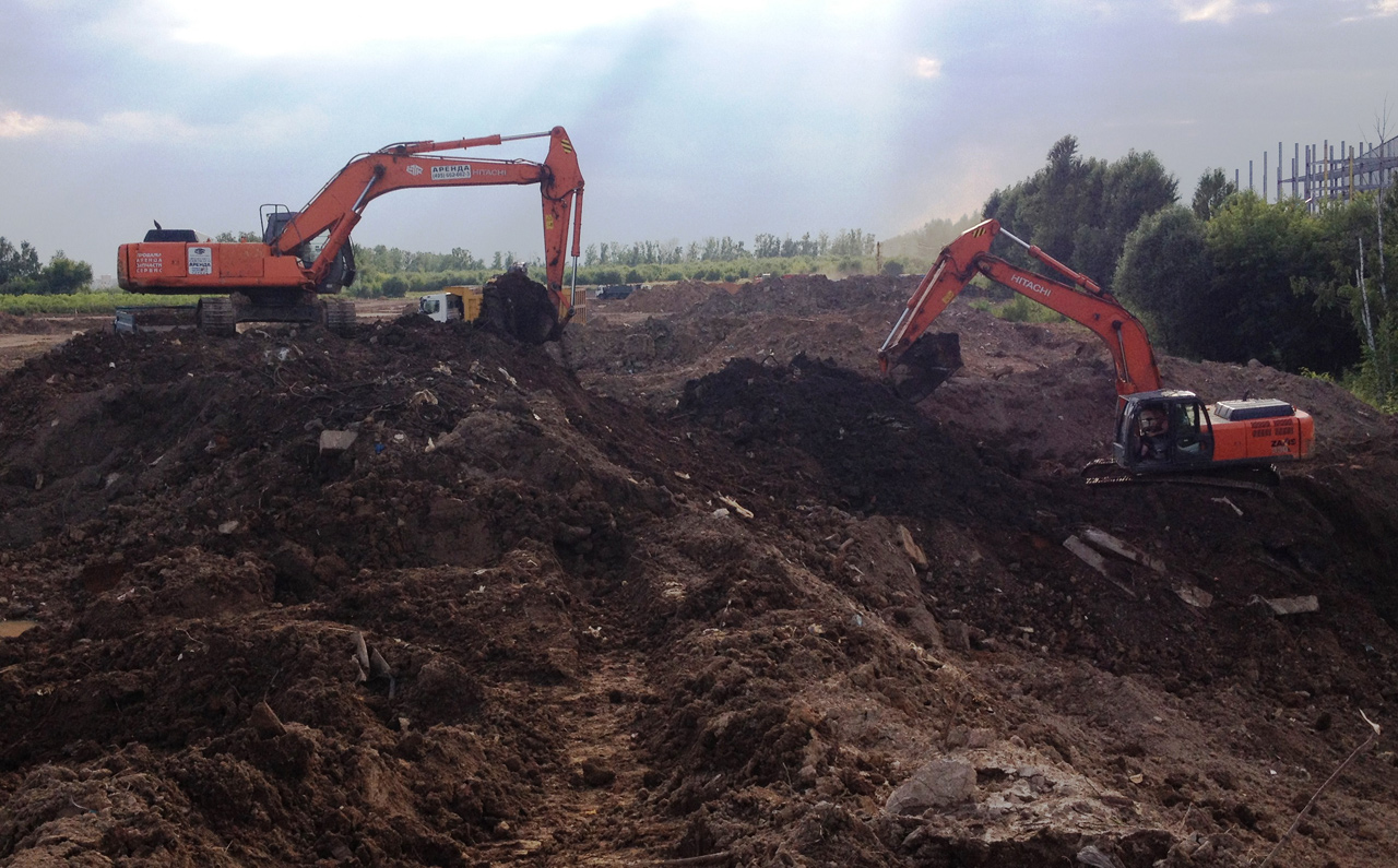 В процессе привлекаются большегрузные самосвалы, тракторы, автокраны и прочая техника, способная помочь в выполнении геодезических и земляных работ. Все манипуляции проводятся с разрешения территориальных органов.»