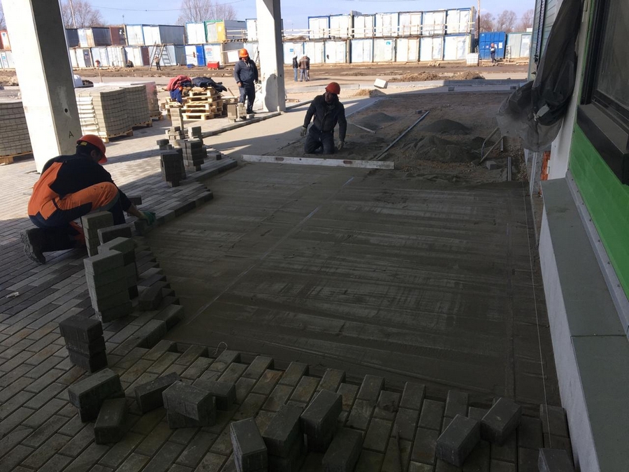 устройство тротуаров с мощением тротуарной плиткой покрытий шапито;