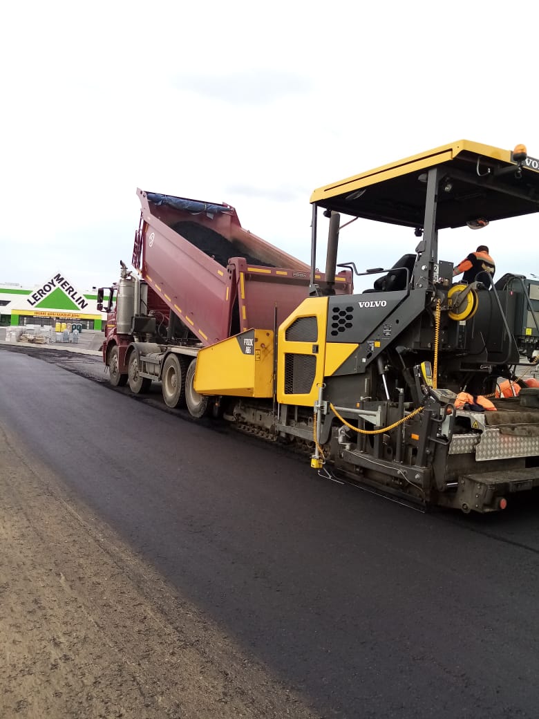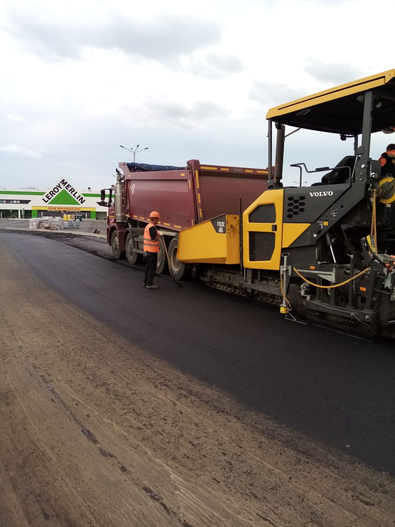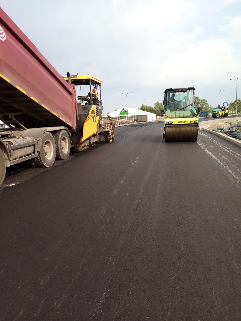 На данный момент полным ходом идет укладка асфальтобетонного покрытия.